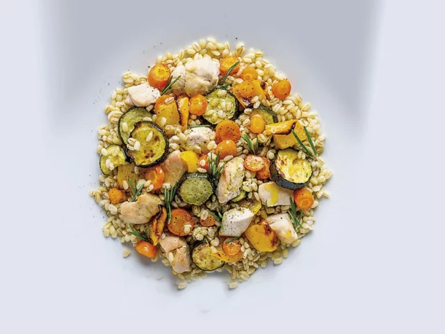 1. Orzo, pesce spada, zucchine e pomodorini