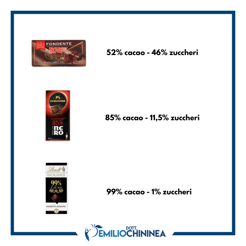 Leggere sempre la percentuale di cacao presente sulla confezione. Più è alta, meglio è.