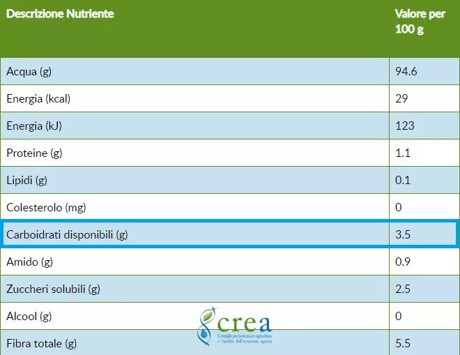 Tabella nutrizionale zucca